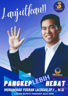 “Nama Ketua DPD Nasdem H. Muhammad Yusran Lalogau tak lain biupati Kab. Pangkep muncul berpasangan dengan Rahman Assegapa di bursa Pilkada Kab. Pangkep Bahkan, Ketua Tim pemenangan Arfan Tualle sudah memastikan akan maju MYL-ARAH dipilkada 2024