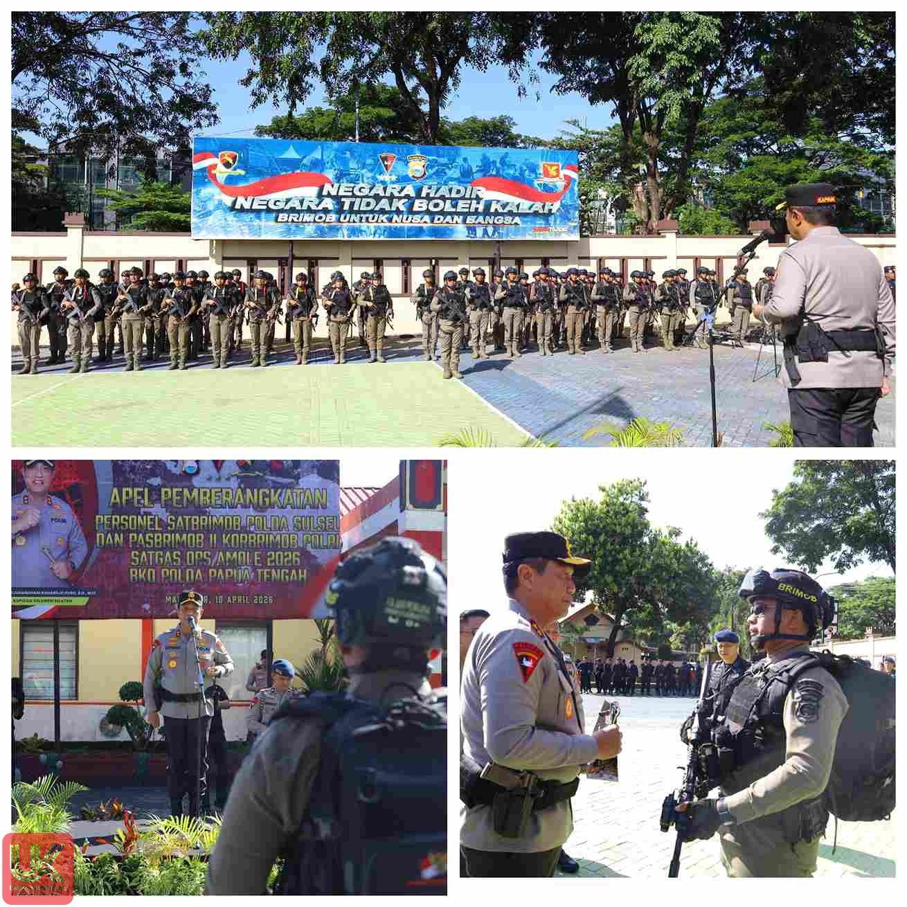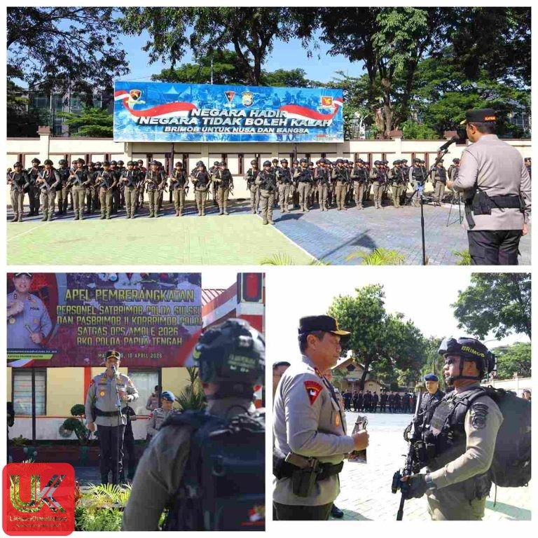 Lintas-Khatulistiwa.com | Makassar– Kapolda Sulawesi Selatan Irjen Pol. Djuhandhani Rahardjo Puro, S.H., M.H., memimpin langsung Apel Pemberangkatan Personel Satuan Brimob Polda Sulsel dan Pasukan Brimob II Korbrimob Polri dalam rangka pelaksanaan Operasi Amole 2026 BKO Polda Papua Tengah. Kegiatan tersebut berlangsung di Lapangan Mako Yon A Pelopor Satbrimob Polda Sulsel, Jumat (10/04/2026).