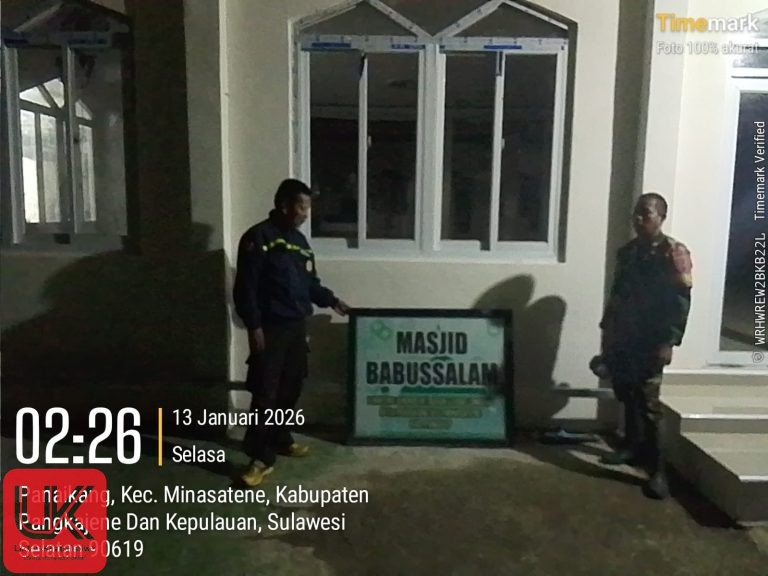 Lintas-Khatullistiwa.com | PANGKEP , – Bhabinkamtibmas Desa Panaikang Polsek Minasatene Polres Pangkep Aipda Muhammading bersama Babinsa Desa Panaikang Serma Aminullah melaksanakan patroli malam hingga dini hari pada Selasa (13/1) sekitar pukul 02.26 WITA.