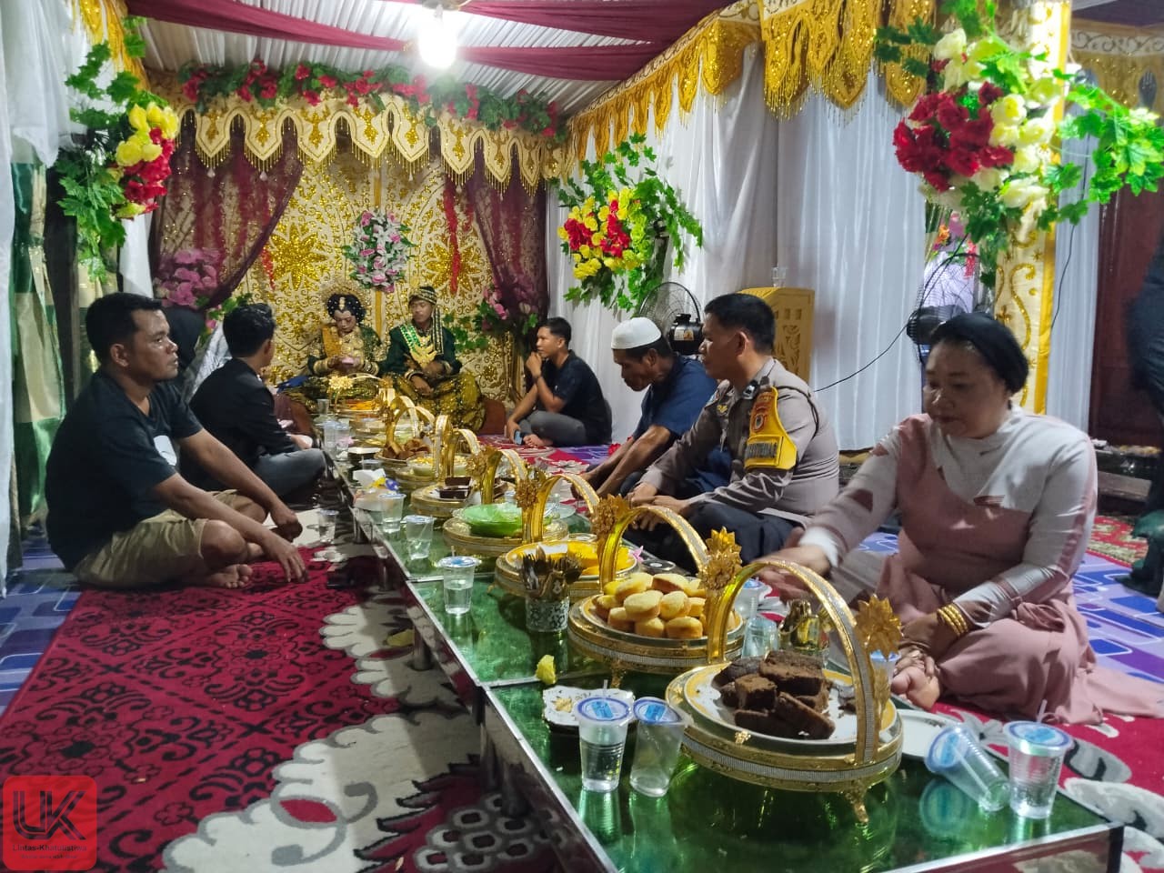 Dengan senyum ramah, Aipda Rasid berkoordinasi dengan tuan rumah, memastikan setiap sudut acara aman dan tertib. Imbauan ringan namun penting disampaikan kepada para tamu: “Mari kita jaga bersama ketertiban dan keamanan. Hindari hal-hal yang dapat memicu keributan, agar kebahagiaan malam ini tetap sempurna hingga akhir.” Pesan yang merangkul, bukan sekadar perintah, menciptakan suasana aman tanpa mengurangi euforia pesta.