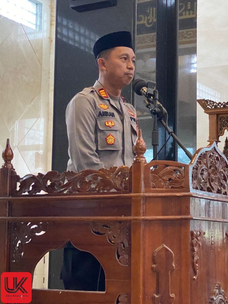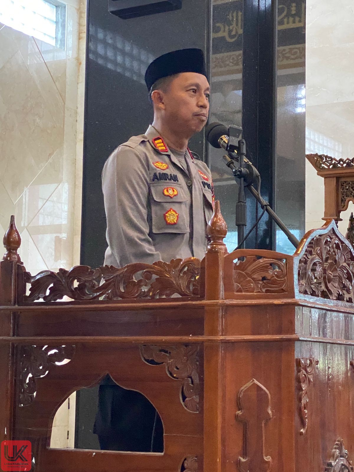 Di hadapan para jamaah, AKP Amran Adam diberikan kesempatan naik ke mimbar untuk menyampaikan sejumlah pesan penting terkait keamanan dan ketertiban masyarakat (kamtibmas).