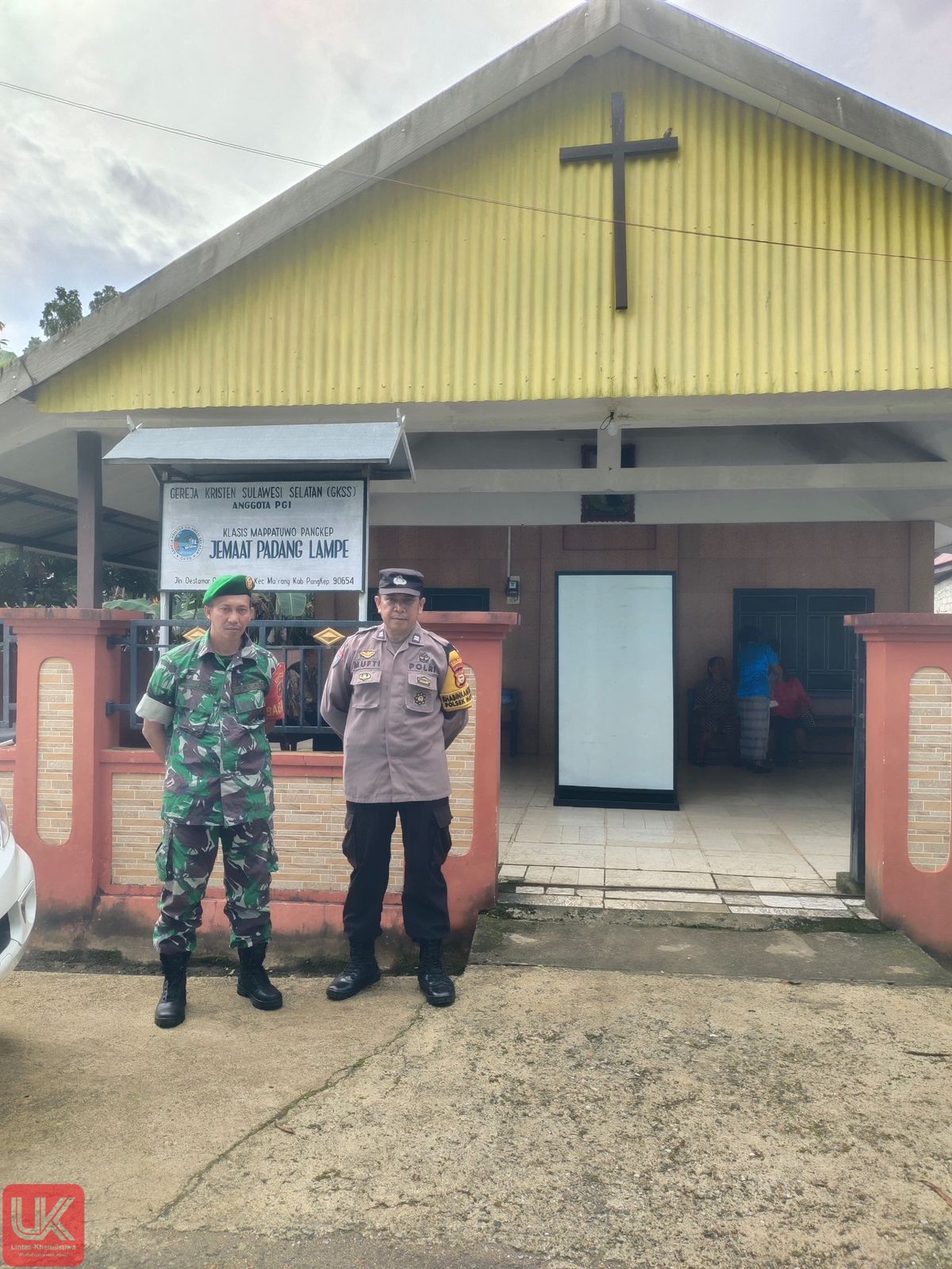 Pangkep, 21 September 2025 — Pada hari Ahad siang, 21 September 2025, Bhabinkamtibmas Polsek Ma’rang Aiptu Mufti, S.H. bersama Babinsa Koramil 1421/05 Ma’rang Sertu Yahya Salam melaksanakan pengamanan bersama dalam kegiatan ibadah mingguan umat Kristiani di Gereja Klasis Mappatuo, Kampung Destamar, Desa Padang Lampe, Kecamatan Ma’rang, Kabupaten Pangkep.