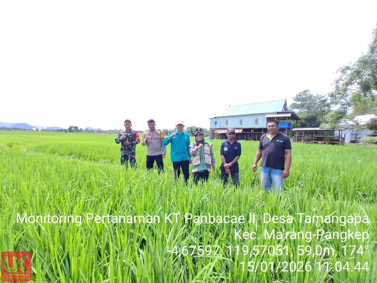 Kegiatan pendampingan tersebut dilaksanakan di area persawahan Kampung Balombong, Desa Tamangapa, Kecamatan Ma’rang, Kabupaten Pangkep. Monitoring dilakukan sebagai langkah antisipatif menyikapi adanya laporan petani terkait kondisi tanaman padi yang mulai mengalami perubahan daun akibat serangan hama.