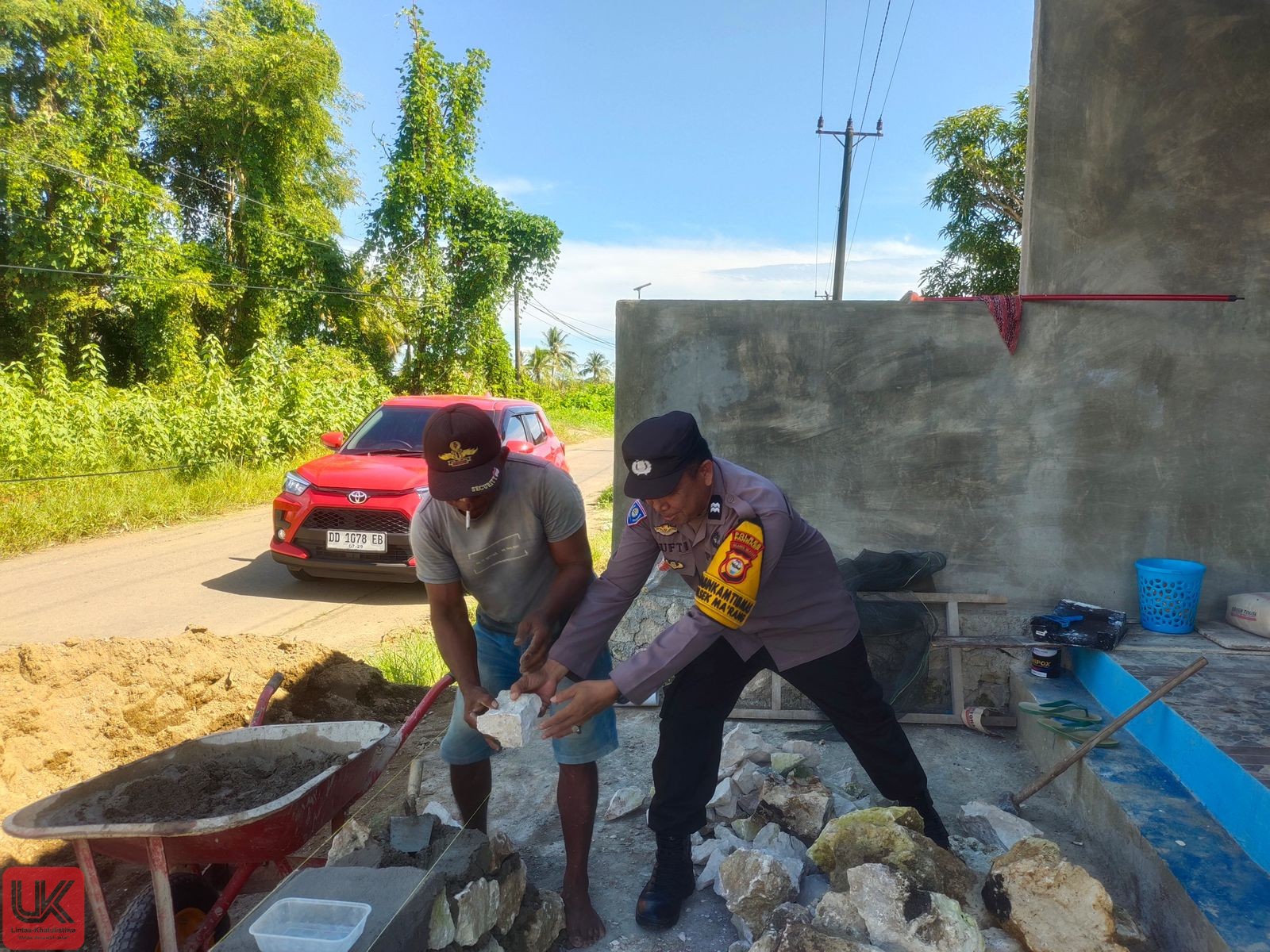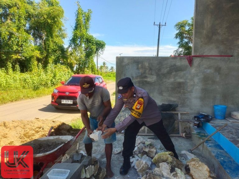 LINTAS-KHATULISTIWA.COM Pangkep-, Bhabinkamtibmas Polsek Ma’rang Polres Pangkep Aiptu Mufti, S.H., melaksanakan giat sambang warga di Desa Padanglampe Kecamatan Ma’rang Kabupaten Pangkep, Rabu (09/07/2025). Dalam giat sambangnya Aiptu Mufti, S.H., menemui warga yang sedang membangun pondasi pagar rumah, Ia pun menyempatkan untuk membantu warga tersebut
