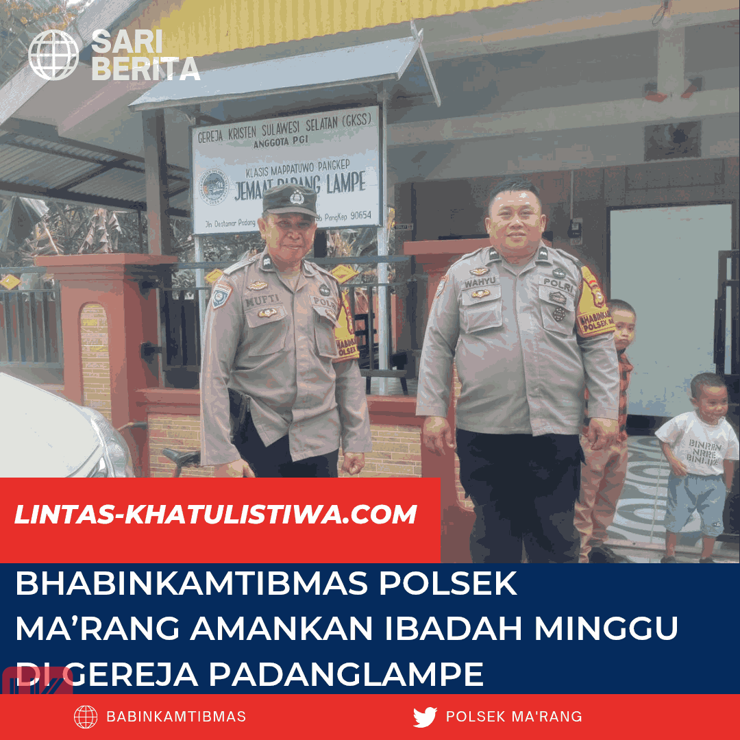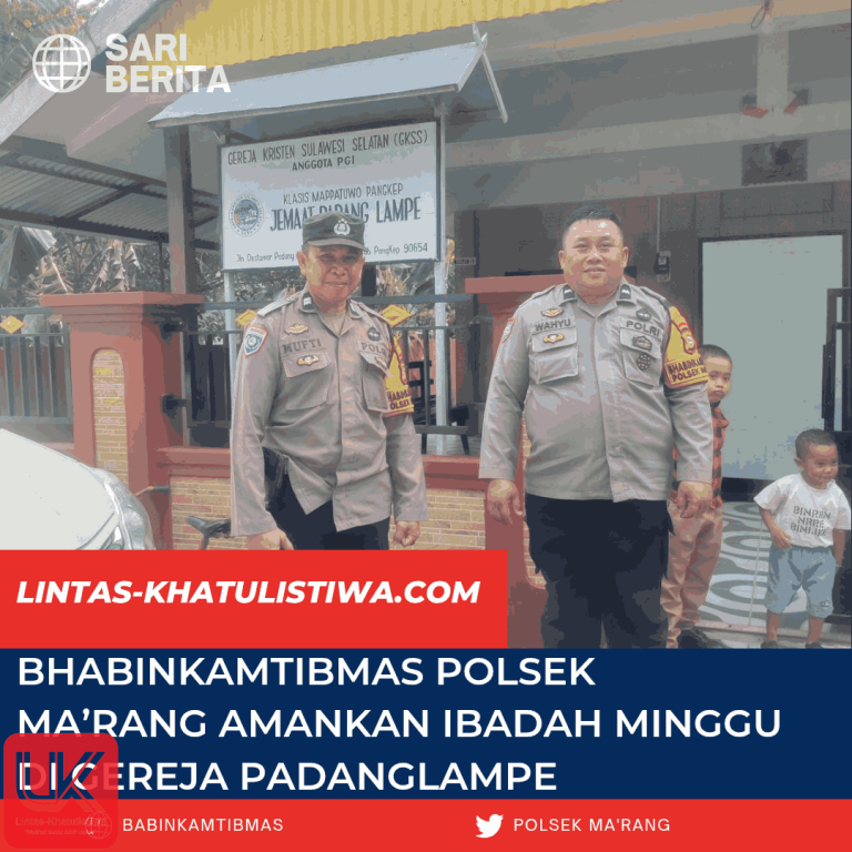 Pangkep – Dalam rangka memberikan pelayanan terbaik kepada masyarakat dan memastikan keamanan pelaksanaan ibadah, Bhabinkamtibmas Desa Padanglampe Polsek Ma’rang Polres Pangkep Aiptu Mufti, S.H., bersama Aipda Wahyuddin, melaksanakan pengamanan Ibadah Minggu Jemaat Gereja Klasis Mappatuo Padanglampe, Desa Padanglampe, Kecamatan Ma’rang, Kabupaten Pangkep, Minggu (09/10/2025) pagi.