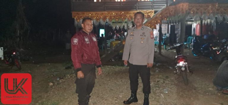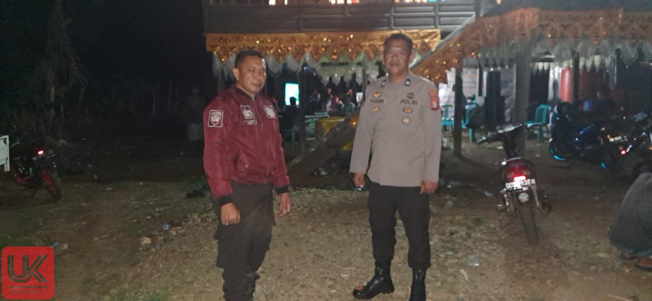 LINTAS-KHATULISTIWA.COM. Pangkep-Bhabinkamtibmas Polsek Ma’rang Polres Pangkep Aiptu Mufti, S.H., bersama piket SPKT Aiptu Muh Yusri, S.H., melaksanakan monitoring dan pengamanan pesta pernikahan warga binaan di Kampung Alekarajae, Kelurahan Attangsalo Kecamatan Ma’rang Kabupaten Pangkep, Selasa (05/08/2025) Malam.