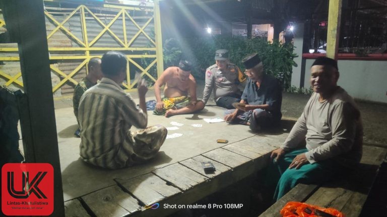Ma’rang – Dalam rangka menjaga situasi keamanan dan ketertiban masyarakat (kamtibmas) tetap aman dan kondusif, Bhabinkamtibmas Polsek Ma’rang Polres Pangkep, Aiptu Baharuddin, melaksanakan kegiatan sambang ke Pos Satkamling di wilayah binaan Kelurahan Bonto-Bonto, Kecamatan Ma’rang, Kabupaten Pangkep, Sabtu malam (07/02/2026).
