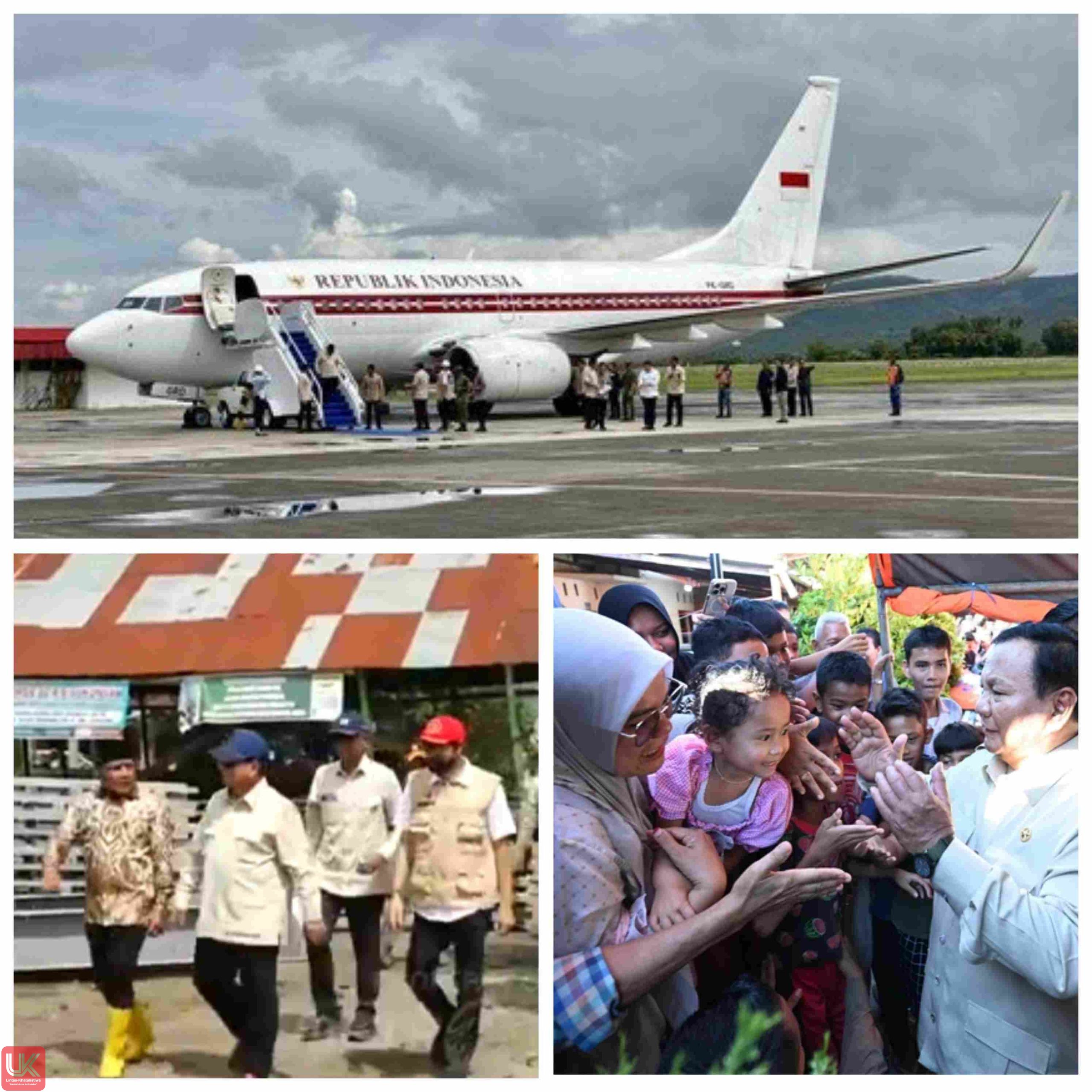 LINTAS-KHATULISTIWA COM. ACEH BESAR, 7 Desember 2025 – Presiden Prabowo Subianto pada Minggu pagi, 7 Desember 2025, tiba di Aceh untuk kunjungan kerja keduanya, dengan agenda utama meninjau langsung penanganan dampak bencana banjir bandang dan longsor yang melanda wilayah tersebut. Beliau mendarat di Bandara Internasional Sultan Iskandar Muda, Aceh Besar, sekitar pukul 10.21 WIB, sebelum segera melanjutkan perjalanan ke Kabupaten Bireuen menggunakan helikopter kepresidenan.