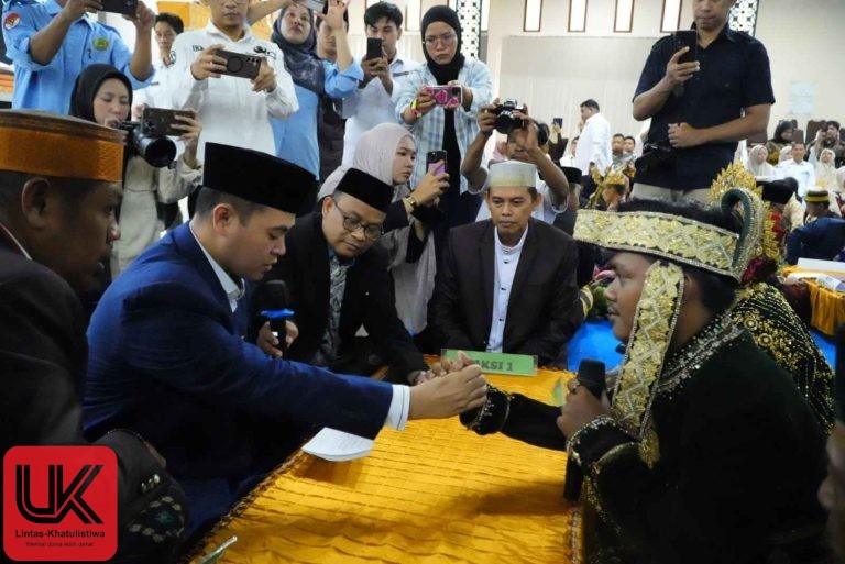 “Pernikahan massal yang kita laksanakan pada hari ini, nawaitunya untuk memberikan kepastian hukum kepada masyarakat kita khususnya yang belum memiliki buku nikah, mungkin terkendala masalah ekonomi atau apapun itu, setidaknya memiliki buku nikah dan hak hak di dalam pernikahan itu bisa dipenuhi baik untuk laki lakinya, perempuan dan untuk anak anak kita kedepan,” ujar Bupati Yusran Lalogau.