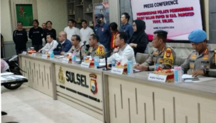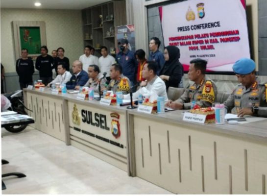 “Dalam konferensi pers yang dipimpin langsung Kapolda Sulsel Irjen Pol Andi Rian R. Jayadi di Mapolda Sulsel ,Senin 19/08/2024 didampingi Kabid Humas Kombes Didik Supranoto dan Kapolres Pangkep AKBP Ari Kartika Bakti.
