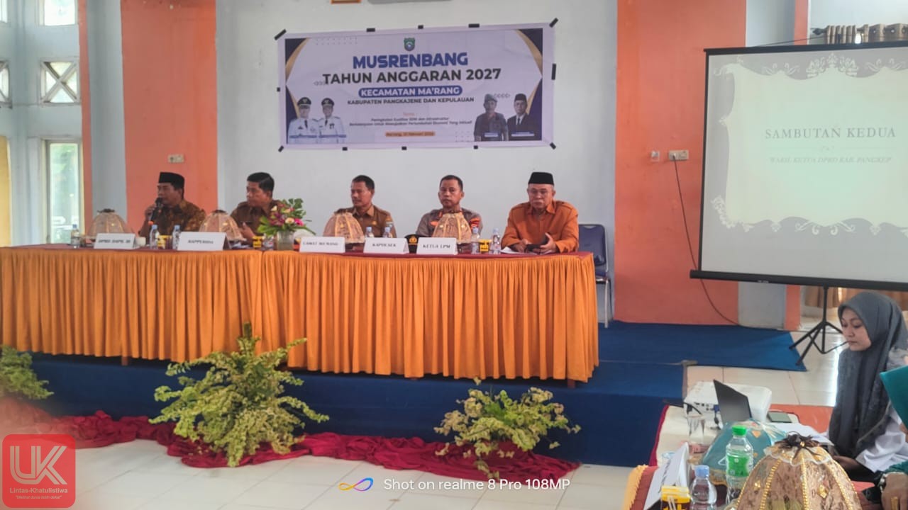 Ma’rang – Kapolsek Ma’rang Polres Pangkep, AKP Amran Adam, menghadiri kegiatan Musyawarah Perencanaan Pembangunan (Musrenbang) tingkat Kecamatan Ma’rang Tahun Anggaran 2027 yang digelar di Aula Kantor Camat Ma’rang, Kelurahan Bonto-Bonto, Kecamatan Ma’rang, Kabupaten Pangkep, Selasa (10/02/2026).