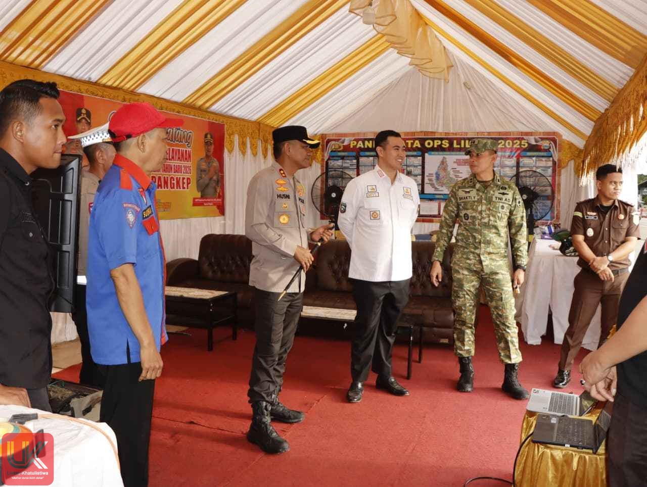 Dalam kegiatan tersebut, Kapolres Pangkep bersama Forkopimda melakukan peninjauan langsung terhadap kesiapan personel gabungan yang terdiri dari unsur Polri, TNI, Dinas Perhubungan, Satpol PP, BPBD, dan Dinas Kesehatan, sekaligus memeriksa kelengkapan sarana dan prasarana pendukung pengamanan di Pos PAM.