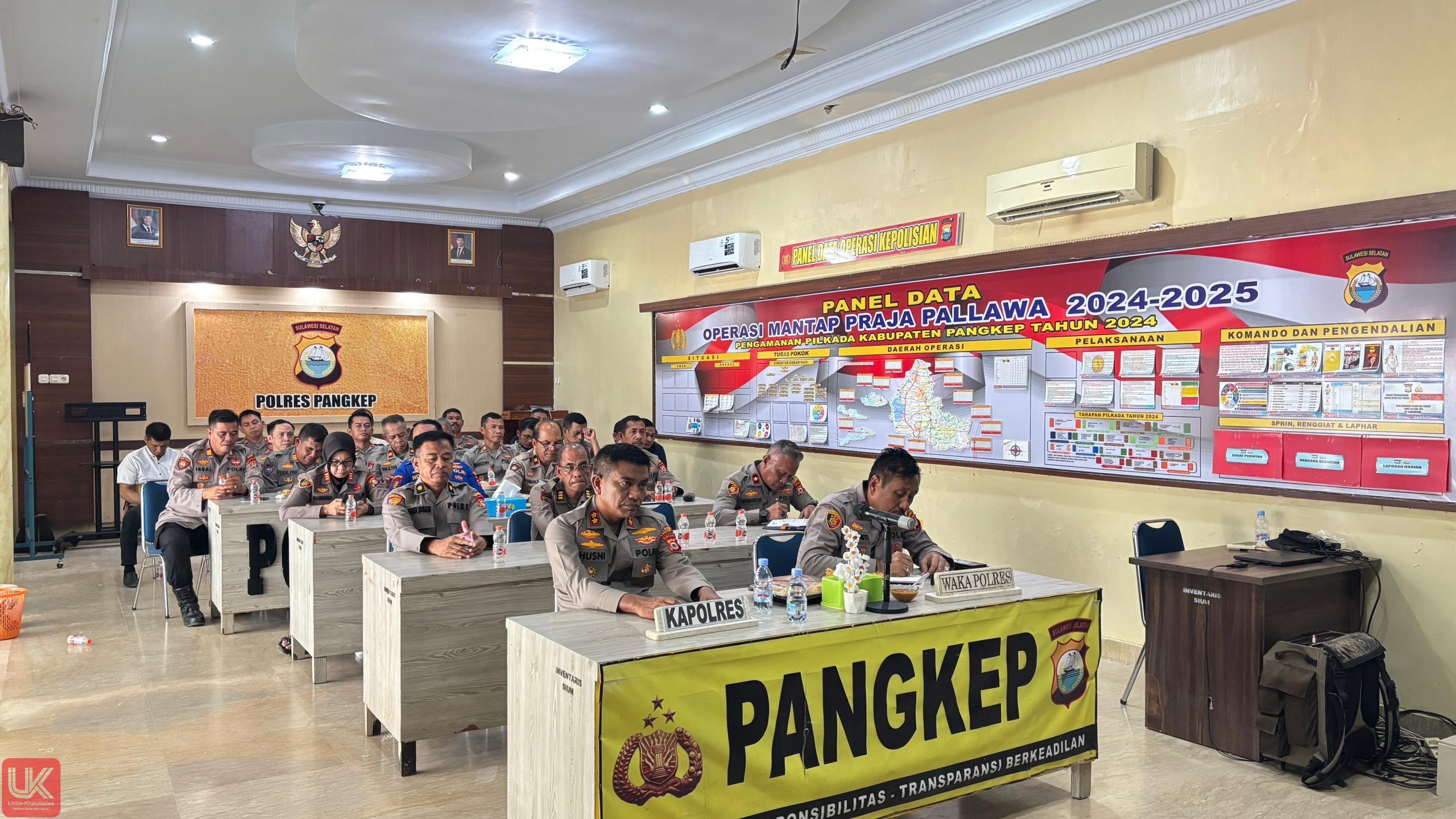 Dalam kegiatan tersebut, Kapolres Pangkep AKBP M. Husni Ramli, S.I.K., M.H., M.Tr.Opsla, turut didampingi oleh Wakapolres Pangkep Kompol Sugeng Suprijanto, S.Pd., M.H., para Pejabat Utama Polres Pangkep, serta para Kapolsek jajaran. Seluruh peserta mengikuti kegiatan dengan penuh perhatian, mencermati setiap arahan dan evaluasi yang disampaikan oleh pimpinan guna diterapkan di wilayah hukum masing-masing.