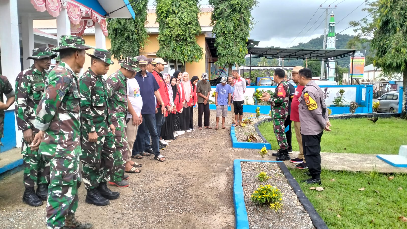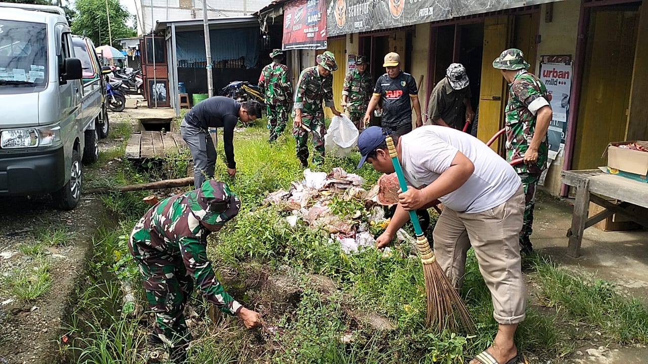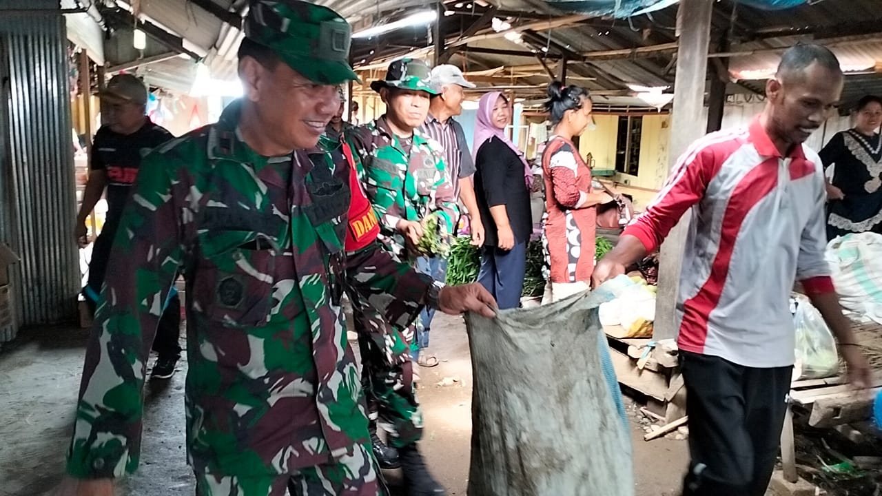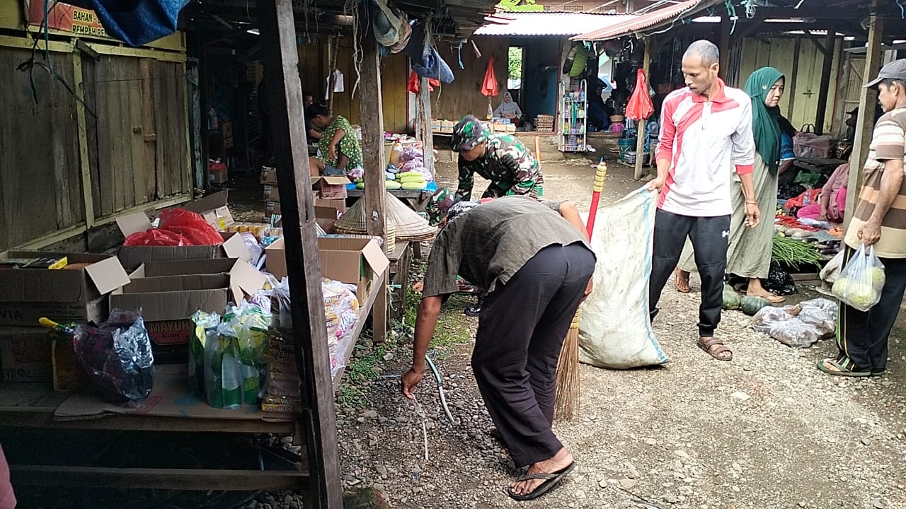 KODIM KAB.PANGKEP/KORAMIL 1421-05/Ma’rang pada hari Rabu tgl 17 januari 2024 pukul 07.20 wita kapten inf Muh Raharto Danramil 1421-05/Mar’ang dan anggota koramil 05 / Ma’rang bersama kepala Desa Padang Lampe dan staf, kepala Puskesmas Padang Lampe Dan Staf beserta Warga Desa Padang Lampe melaksanakan karya bakti bersama di pasar Desa dan sepeutaran kantor Desa bertempat di Desa padanglampe , Kec Mar’ang , Kab Pangkep.