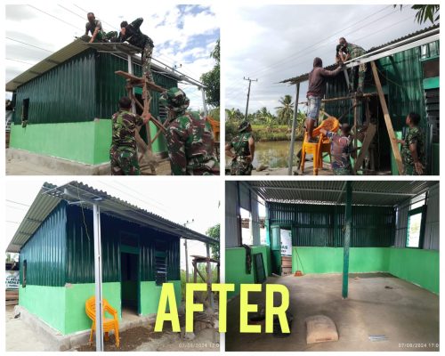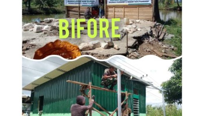 PANGKEP-Program Rumah Layak Huni milik warga yang terletak di Jalan Poros Makassar – Pare, Desa Gentung, Kecamatan Labakkang, Kabupaten Pangkajene dan Kepulauan, merupakan hasil kolaborasi Baznas dan Pemda serta Kodim 1421/Pangkep yang realisasinya dijalankan pada Senin, 15 Juli sampai 8 Agustus 2024 yang saat ini masih dikerjakan oleh Koramil 07 Liukang Tupabiring.