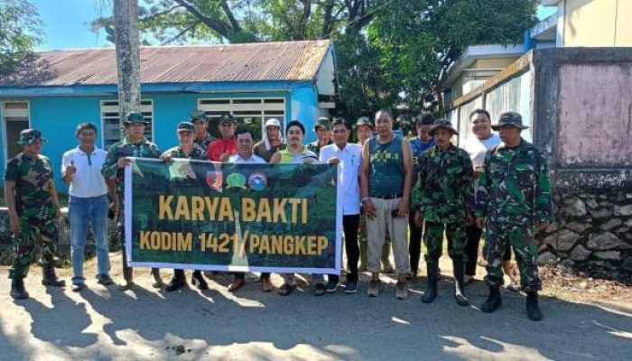 “Kapten Cke Abdul Gaffar Danramil 1421-04/Labakkang Kodim 1421/Pangkep bersama Personel Koramil 1421-04/Labakkang dan Staf Puskesmas Labakkang, Staf Kelurahan Labakkang, serta masyarakat setempat melaksanakan kegiatan Karya Bakti.