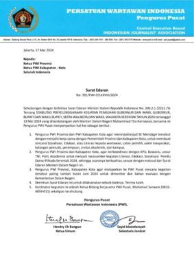 “Tak hanya itu, dalam SE (surat edaran) tersebut Mendagri juga menekankan pentingnya kepala daerah meningkatkan peran partisipasi asosiasi atau perhimpunan wartawan dalam mendukung Pilkada 2024.