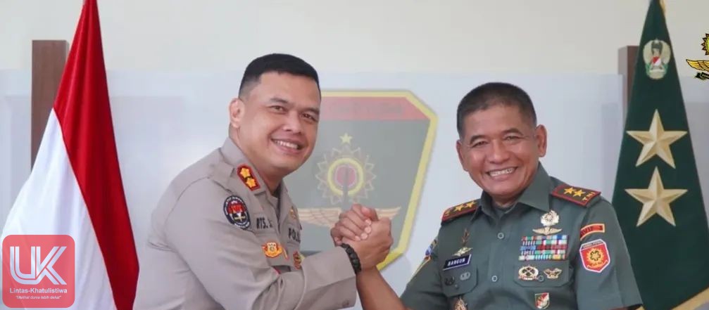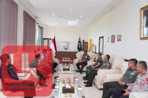 LINTAS-KHATULISTIWA COM.  Pakatto, Gowa – Komandan Divisi Infanteri 3 Kostrad Mayjen TNI Bangun Nawoko menyambut kedatangan AKBP RTS Simanjuntak, SH, SIK, MM, MIK, Kapolres Gowa, dalam kunjungan kehormatan dan perpisahan di Markas Divif 3 Kostrad di Pakatto, Gowa pada Kamis, 10 April 2025.