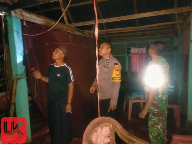 Pangkep – Wujud kepedulian terhadap warga binaan kembali ditunjukkan oleh aparat TNI-Polri. Pada Sabtu malam, 25 April 2026, Bhabinkamtibmas Polsek Ma’rang Aiptu Mufti bersama Babinsa Koramil 1421/05 Ma’rang Sertu Muhammad Yahya Salam mendatangi kediaman warga korban angin puting beliung di Kampung Padang Lampe, Kecamatan Ma’rang, Kabupaten Pangkep.