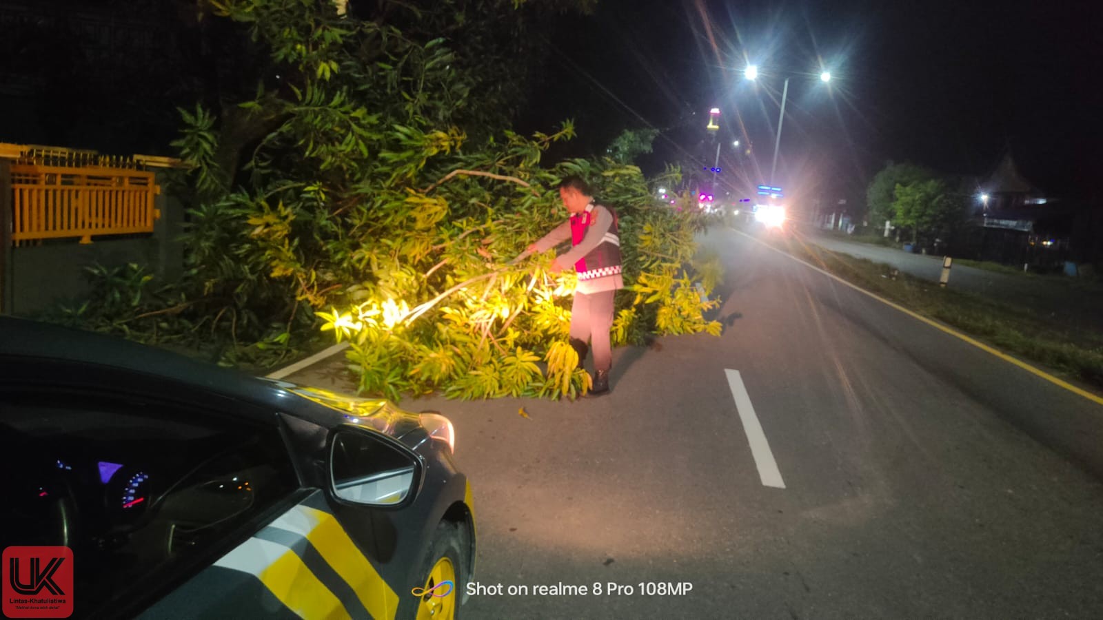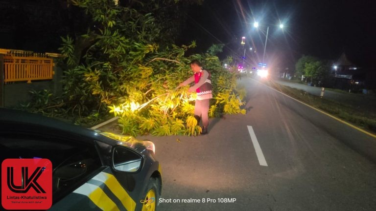 Dengan sigap, kedua personel langsung turun tangan memotong dan menyingkirkan ranting pohon tersebut dari badan jalan. Tindakan cepat itu dilakukan demi mencegah terjadinya kecelakaan lalu lintas dan memastikan arus kendaraan tetap lancar.