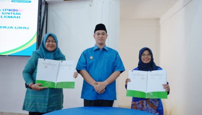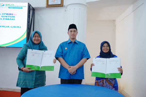 Selain penandatanganan PKS, diserahkan santunan untuk keluarga peserta BPJS Ketenagakerjaan.