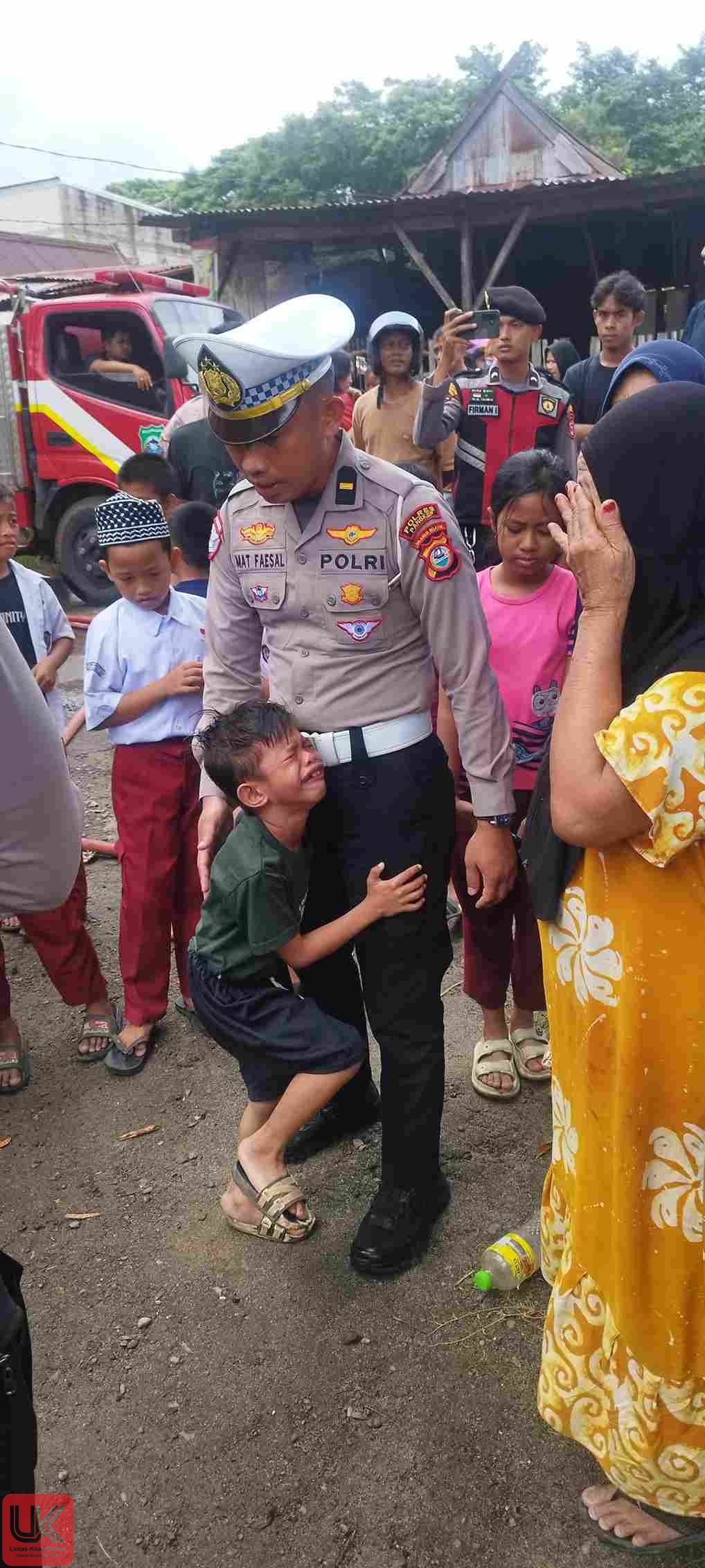 Dengan penuh kelembutan, personel Polres Pangkep berupaya menenangkan dan menguatkan mental anak korban, agar mereka merasa tidak sendiri dalam menghadapi musibah yang menimpa. Pelukan dan kata-kata penguatan menjadi simbol kehadiran negara dalam memberikan rasa aman dan perlindungan kepada masyarakat.