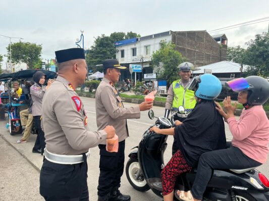 “ Dengan adanya kegiatan ini kita dapat membantu masyarakat yang sedang menjalankan ibadah puasa terutama yang berada di perjalanan, disamping itu kita juga memberikan imbauan ke pengendara untuk taat berlalu lintas,”ujarnya.