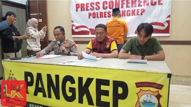 LINTAS- KHATULISTIWA COM. Pangkep, 14/11/2025 – Kepolisian Resor (Polres) Pangkep berhasil mengamankan seorang pemuda berinisial MI (20), seorang mahasiswa, atas dugaan tindak pidana pornografi dan pelanggaran Undang-Undang Informasi dan Transaksi Elektronik (UU ITE). Penangkapan ini terungkap dalam gelar perkara yang dilaksanakan di Mapolres Pangkep, dipimpin oleh Kasi Humas AKP Imran.SH dan didampingi KBO Satreskrim Iptu. Husain.