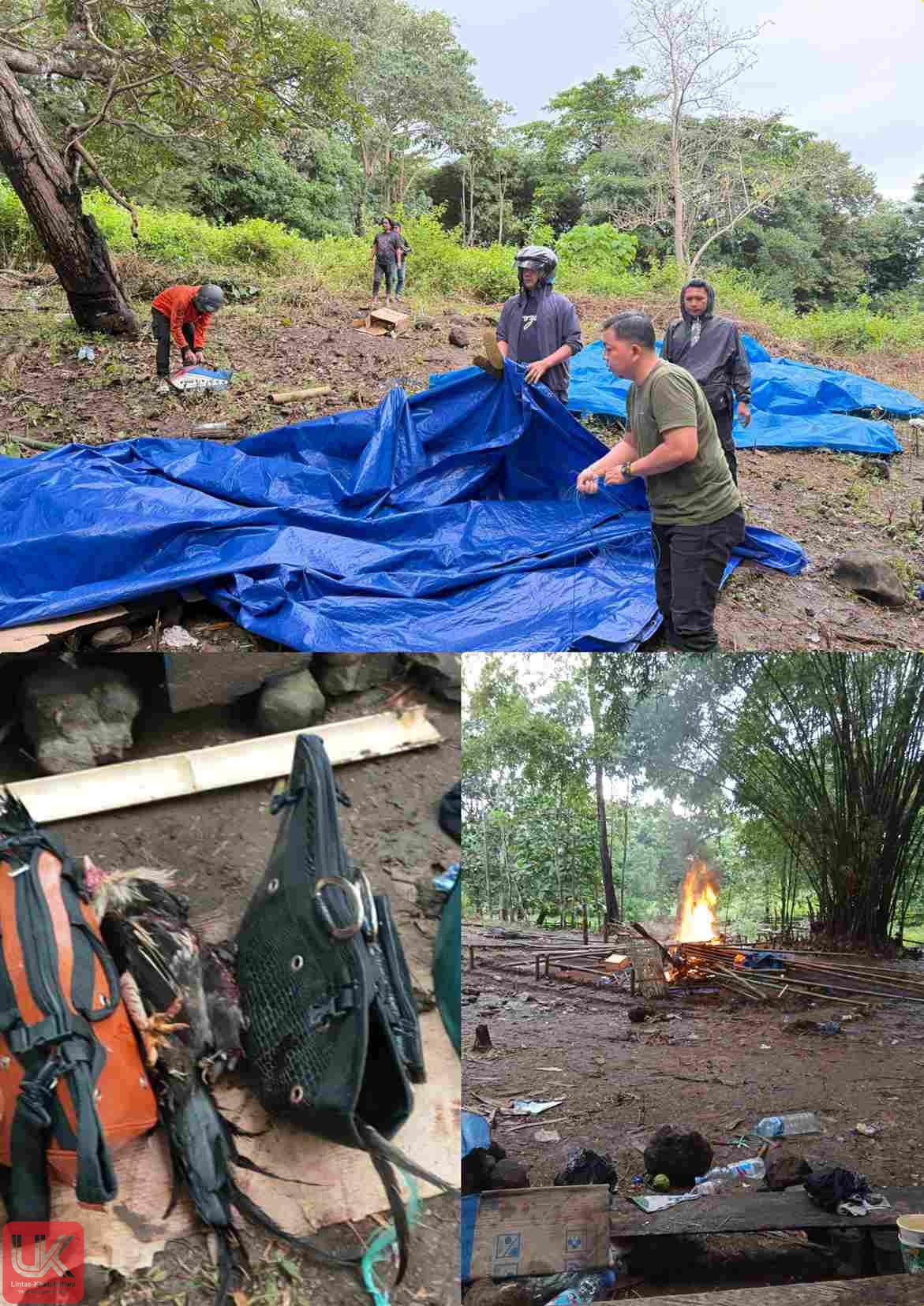Setibanya di lokasi kejadian, petugas langsung membubarkan kegiatan ilegal tersebut. Mereka langsung membongkar arena sabung ayam dengan membakar bangunan yang digunakan untuk berjudi.