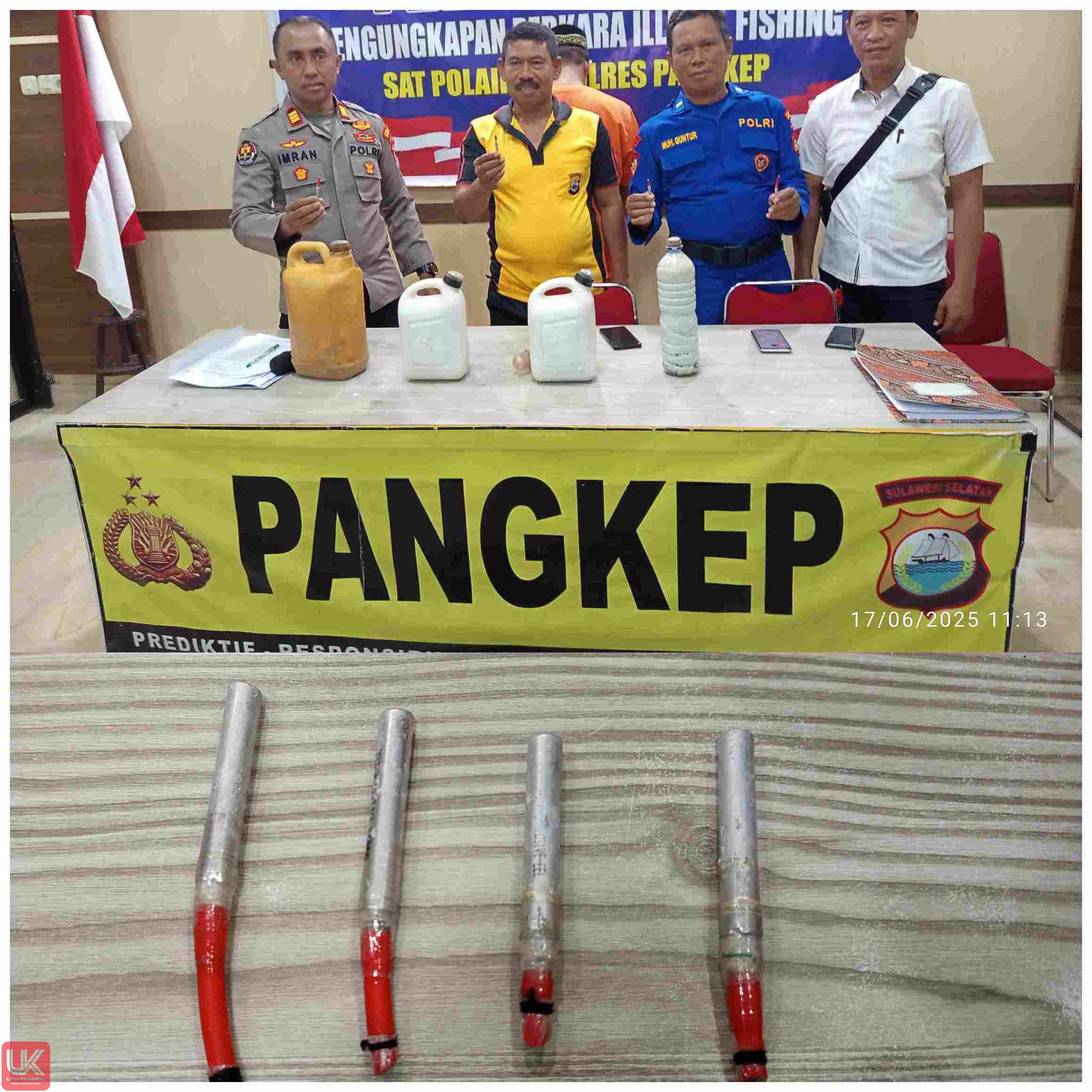 Dalam siaran pers yang digelar di Mapolda Pangkep, Selasa, 17 Juni 2025, aparat mengungkap kasus kepemilikan bahan peledak untuk keperluan penangkapan ikan dengan bom oleh seorang nelayan yang tengah beraktivitas di Perairan Pulau Pandangan, Desa Matiro Ujung, Kecamatan Liukang Tupabiring.