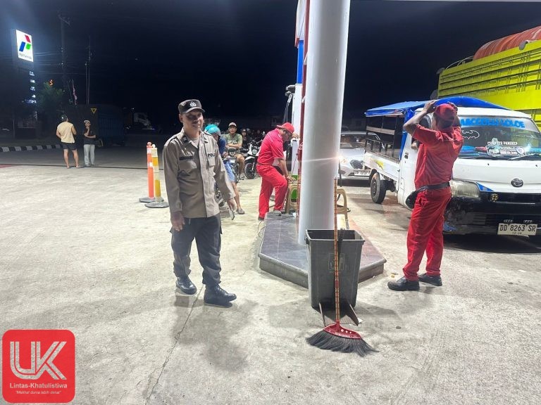 Pangkep – Personel Polsek Ma’rang kembali melaksanakan patroli malam pada Sabtu (30/8/2025) malam. Dalam kegiatan tersebut, petugas singgah di Stasiun Pengisian Bahan Bakar Umum (SPBU) Laikang, Kelurahan Talaka, Kecamatan Ma’rang, Kabupaten Pangkep, untuk berdialog bersama warga dan petugas SPBU.