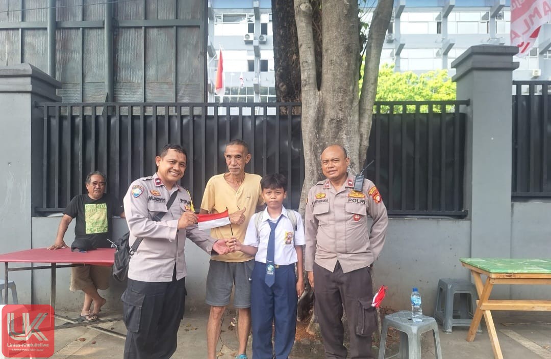 LINTAS-KHATULISTIWA.COM. Jakarta Pusat – Dalam rangka menyambut Hari Ulang Tahun Kemerdekaan Republik Indonesia ke-80, Polsek Metro Menteng kembali menunjukkan kepeduliannya terhadap nilai-nilai nasionalisme dengan melaksanakan kegiatan pembagian bendera merah putih kecil kepada masyarakat.