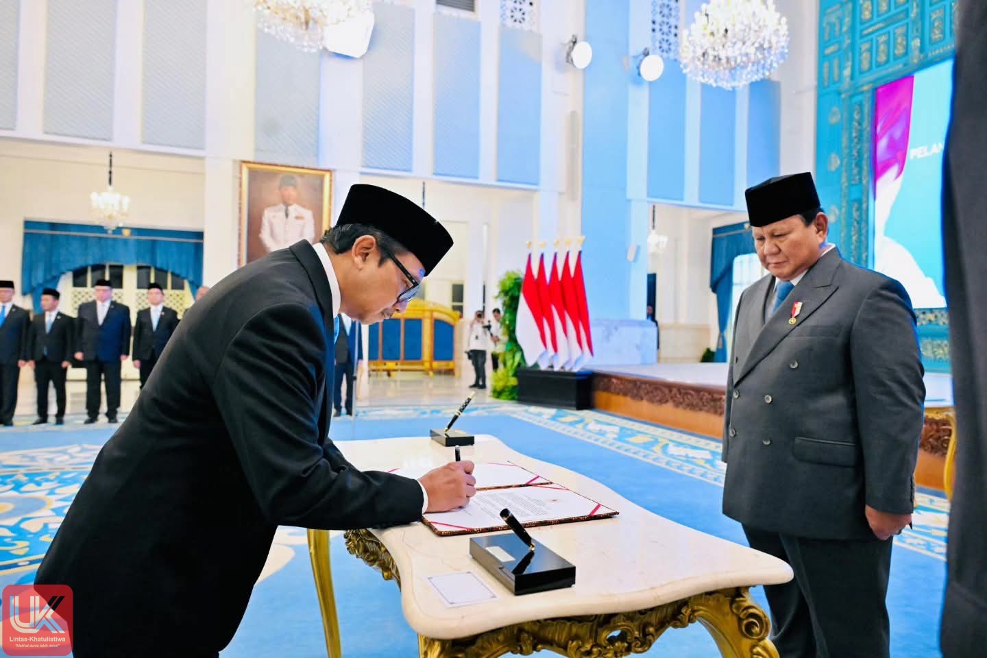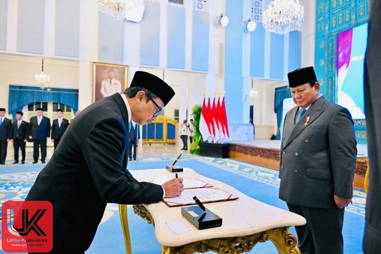 LINTAS-KHATULISTIWA.COM | Jakarta – Presiden Republik Indonesia, Prabowo Subianto, pada Kamis, 5 Februari 2026, menyaksikan secara langsung pengucapan sumpah jabatan Adies Kadir sebagai Hakim Konstitusi di Istana Negara, Jakarta. Acara khidmat ini menandai pengangkatan resmi Adies Kadir untuk menduduki posisi penting dalam lembaga yudikatif negara.