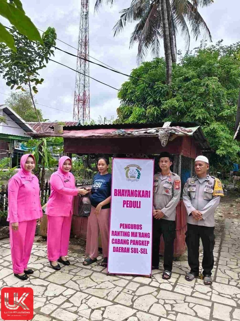 Pangkep – Kepedulian terhadap sesama terus ditunjukkan Bhayangkari Ranting Ma’rang melalui kegiatan sosial bertajuk Bhayangkari Peduli. Pada Rabu sore, 11 Maret 2026, Ketua Bhayangkari Ranting Ma’rang, Ibu Hj. Yuni Amran, didampingi Kapolsek Ma’rang AKP Amran Adam, menyerahkan bantuan berupa paket sembako kepada warga kurang mampu yang tinggal di sekitar Mapolsek Ma’rang, Jalan Pendidikan, Kelurahan Bonto-Bonto, Kecamatan Ma’rang, Kabupaten Pangkep.