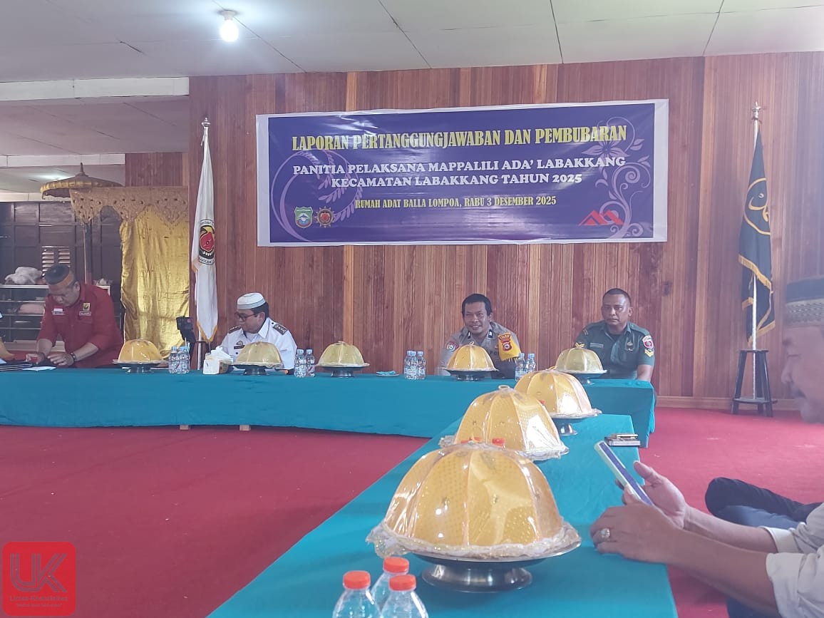 LINTAS-KHATULISTIWA.COM. Pangkep, – Pada hari Rabu, 3 Desember 2025, suasana kekeluargaan menyelimuti Rumah Adat Balla Lompoa di Kampung Mandar, Kelurahan Labakkang, Kecamatan Labakkang, Kabupaten Pangkep. Momen penting ini menjadi saksi penutupan rangkaian kegiatan adat Mappalili tahun 2025, dengan digelarnya acara Laporan Pertanggungjawaban dan Pembubaran Panitia Pelaksana Mappalili Adat Labakkang.
