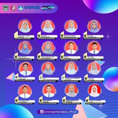 Pangkep – SMA Negeri 1 Pangkajene dan Kepulauan berhasil meloloskan 49 siswanya ke jalur Seleksi Nasional berdasarkan Prestasi (SNBP) terbanyak se kabupaten Pangkep ke beberapa perguruan tinggi negeri bergengsi tahun ini termasuk ke Universitas Indonesia.