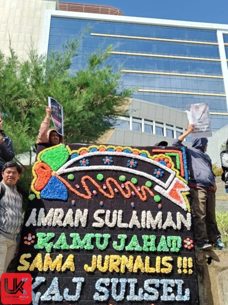 LINTAS-KHATULISTIWA.COM. Makassar, 4 November 2025 — Di Makassar yang menyimpan sejarah panjang perlawanan, sebuah drama keadilan sedang dipentaskan. Bukan di ruang sidang, melainkan di jalanan, tepat di depan AAS Building. Di sana, Koalisi Advokasi Jurnalis (KAJ) Sulawesi Selatan, didukung oleh barisan jurnalis profesional dan pers mahasiswa yang berapi-api, berdiri tegak menyuarakan apa yang mereka sebut sebagai garis pertahanan terakhir demokrasi: kemerdekaan pers.