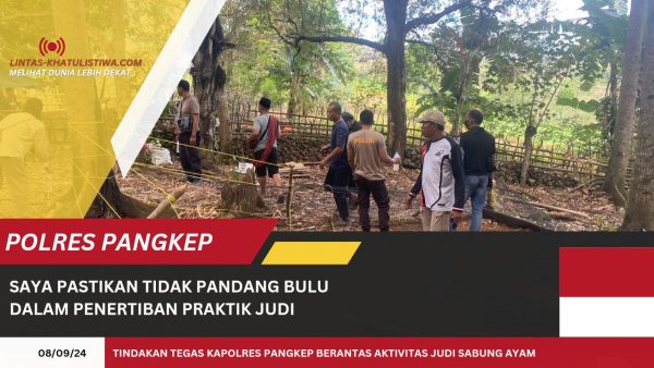 LINTAS-KHATULISTIWA.COM PANGKEP – Aktifitas kegiatan judi sabung ayam di Kampung Kajuara, Desa Coppo Tompong, Kecamatan Mandalle, pada Sabtu (7/9/24) telah dilakukan penindakan tegas oleh Kapolres Pangkep AKBP Ari Kartika Bhakti, S.I.K., M.K.P., bersama jajarannya.