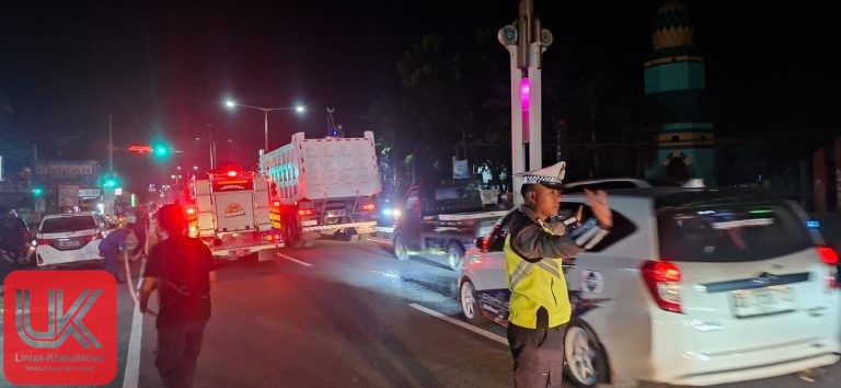 LINTAS-KHATULISTIWA.COM. Pangkep – Personil Sat Lantas Polres Pangkep yang bertugas di Pos Pelayanan Terpadu Ops Lilin 2025 wilayah Kec. Pangkajene melaksanakan pengamanan dan pengaturan lalu lintas di Jalan Sultan Hasanuddin, tepatnya di depan Traffic Light, Rabu malam (24/12/2025).