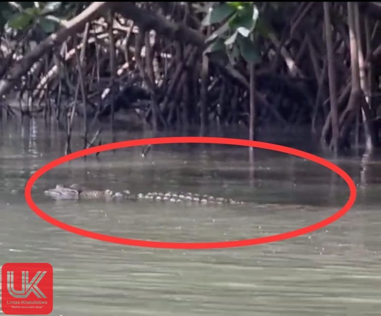 LINTAS-KHATULISTIWA.COM – Pangkep– Seekor buaya besar muncul di Sungai Limbangan, Kel. Talaka, Kecamatan Marang, Kabupaten Pangkep. Penampakan buaya tersebut sontak menjadi pusat perhatian warga yang sehari-hari beraktivitas di sungai tersebut, termasuk nelayan dan petambak udang. Penampakan reptil yang selama ini menjadi jalur pelayaran para pelaut itu pun sontak menjadi sorotan.