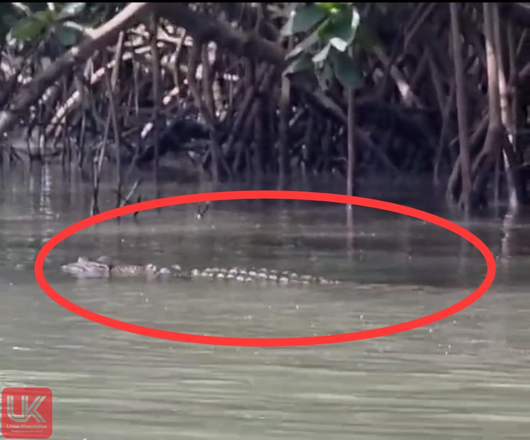 Pada hari Jumat, 1 April 2025, seekor buaya besar terlihat mengambang di perairan dekat permukiman. Kemunculan reptil predator yang tak terduga ini membuat warga setempat ketakutan dan cemas.