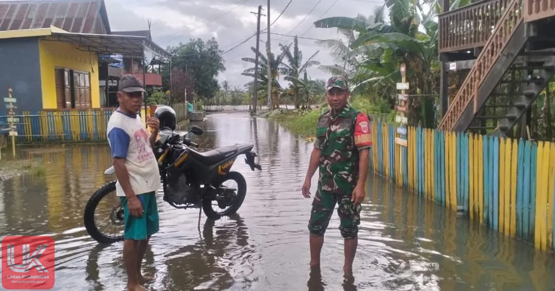 Sertu Hamsah Babinsa Desa Kanaungan Terus Pantau Wilayah Terdampak Banjir di Pangkep