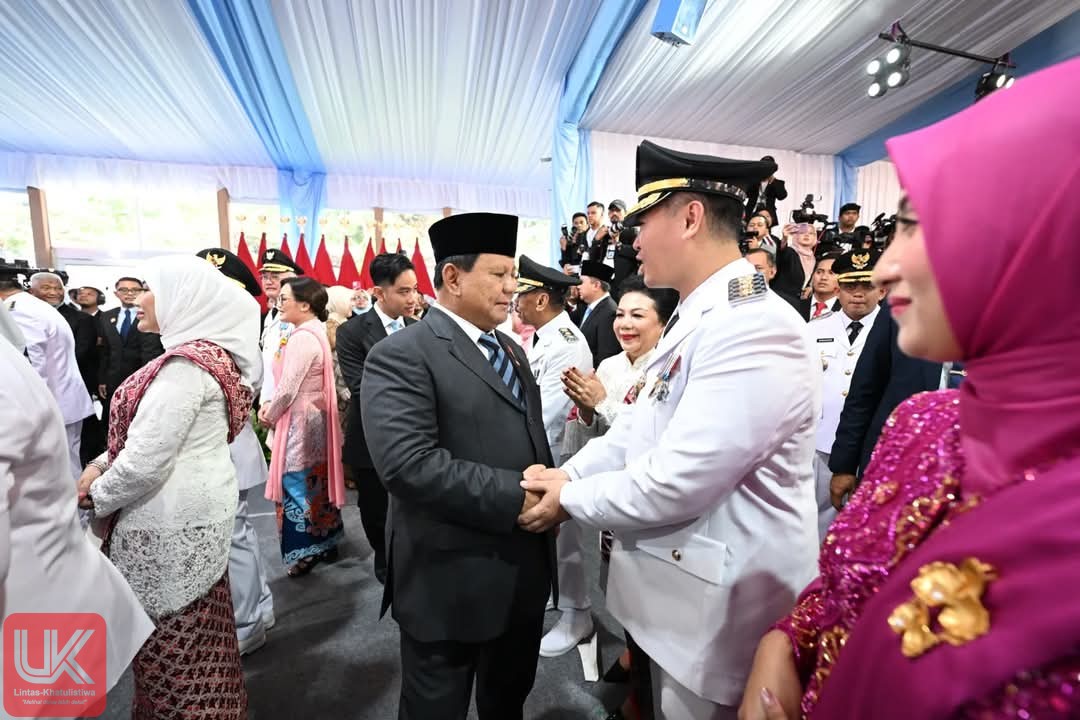 LINTAS-KHATULISTIWA.COM. Jakarta, 21 Februari 2025– Dr. H. Muhammad Yusran Lalo Gau beserta Wakil Bupati, Drs. H. Abdul Rahman Assegap, resmi dilantik sebagai Bupati dan Wakil Bupati Kabupaten Pangkajene dan Kepulauan di Istana Merdeka, Jakarta. Usai pelantikan, Dr. H.Muhammad Yusran menyampaikan rasa terima kasihnya dengan mengatakan, “Alhamdulillah, SAH. Kami mengucapkan terima kasih kepada Bapak Presiden Prabowo Subianto dan Bapak Wakil Presiden Gibran yang telah memberikan kesempatan kepada kami untuk mengukir sejarah.”