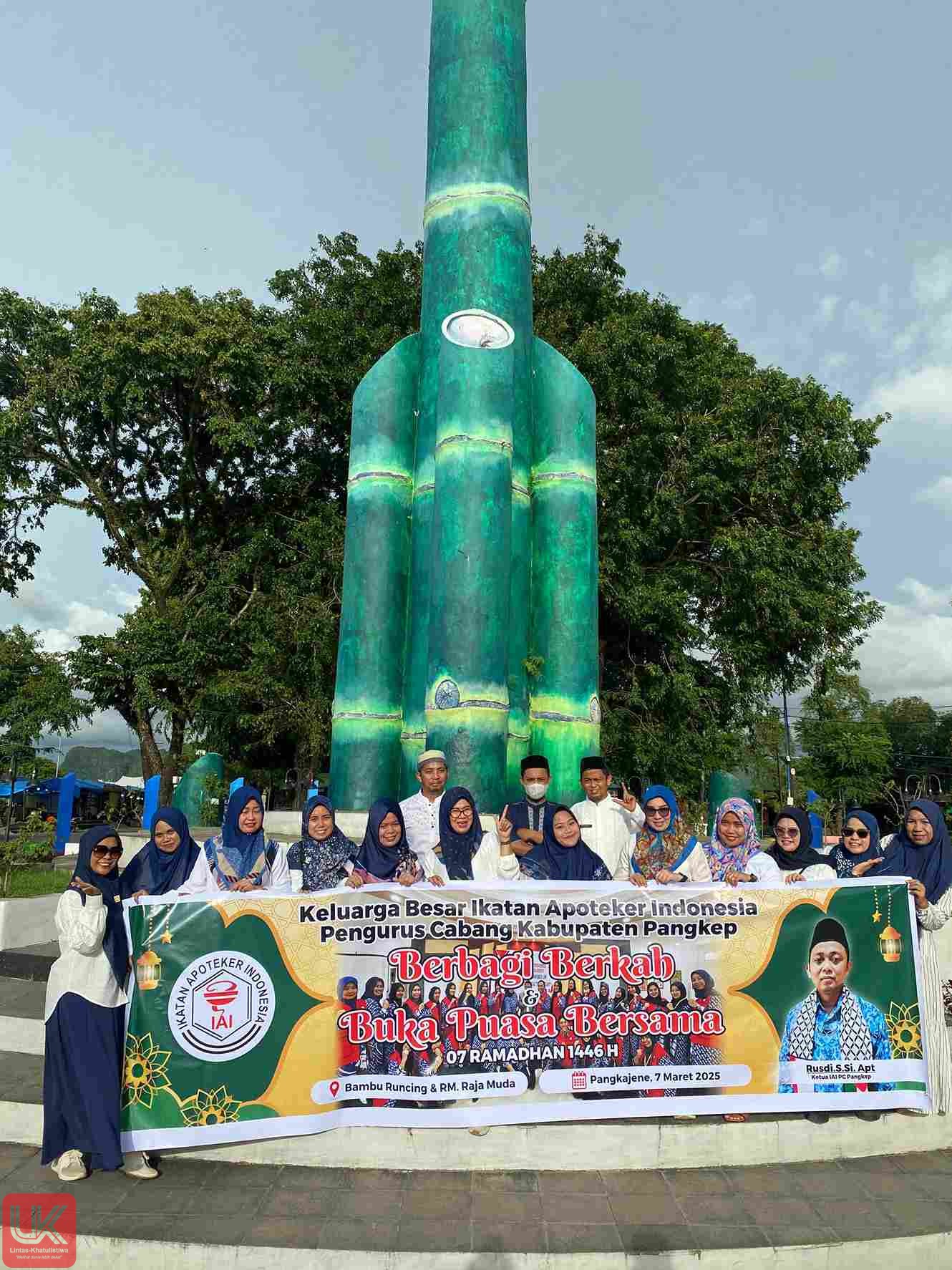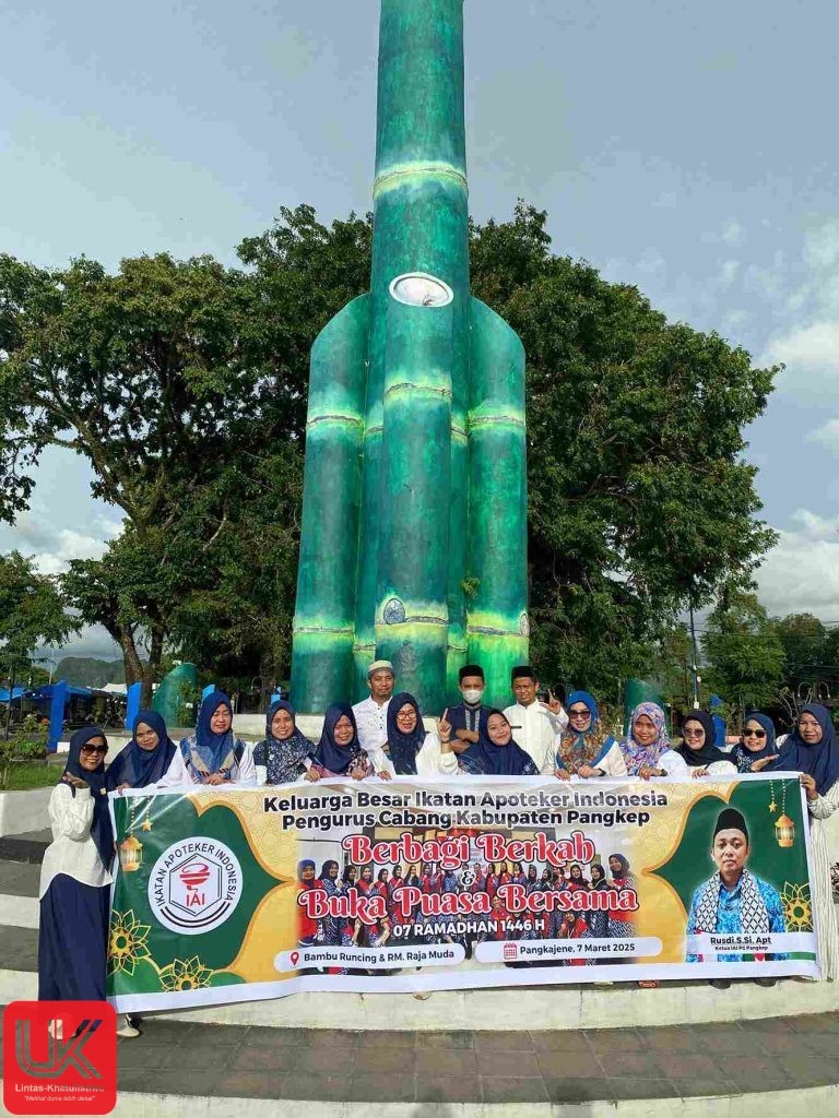 LINTAS-KHATULISTIWA.COM PANGKEP – Kegiatan Berbagi Berkah dan buka puasa bersama. Keluarga Besar Ikatan Apoteker Indonesia (IAI) Cabang Kabupaten Pangkep. Kegiatan berbagi takjil on the road (di jalan). Kegiatan ini dipusatkan di jalan poros Makassar Pare tepatnya di bambu runcing. Dan buka puasa bersama di RM Raja Muda, Jumat (7 Maret 2025)