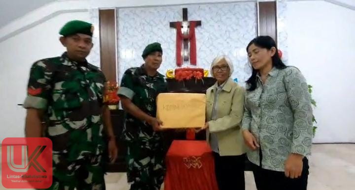 LINTAS-KHATULISTIWA.COM.    KODIM 1421 PANGKEP , Sulawesi Selatan – Dalam semangat persatuan dan kebersamaan menjelang Natal, Lettu Inf Umar Abeto, Danramil 1421-02 Minasate’ne, menyerahkan bingkisan Natal dari Dandim 1421/Pangkep kepada umat Kristiani di Gereja GKSS Klasis Mappatuwo Jemaat Pangkajene, Kamis (19 Desember 2024) pukul 14.15 WITA. Penyerahan bantuan sosial (bansos) ini berlangsung khidmat di Gereja GKSS yang beralamat di Jalan A. Mauraga No.3, Kelurahan Tumampua, Kecamatan Pangkajene, Kabupaten Pangkep.