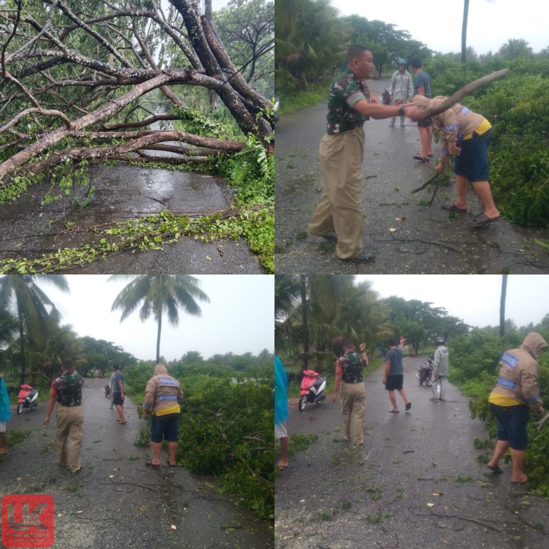 Kejadian tersebut dilaporkan sekitar pukul 12.30 WITA. Pohon yang tumbang akibat angin kencang menghalangi arus lalu lintas, membuat kendaraan dari dua arah tidak dapat melintas. Menanggapi laporan tersebut, Aipda Wahyuddin dan Serda Benny Joko bergerak cepat menuju lokasi bersama warga sekitar untuk melakukan evakuasi.